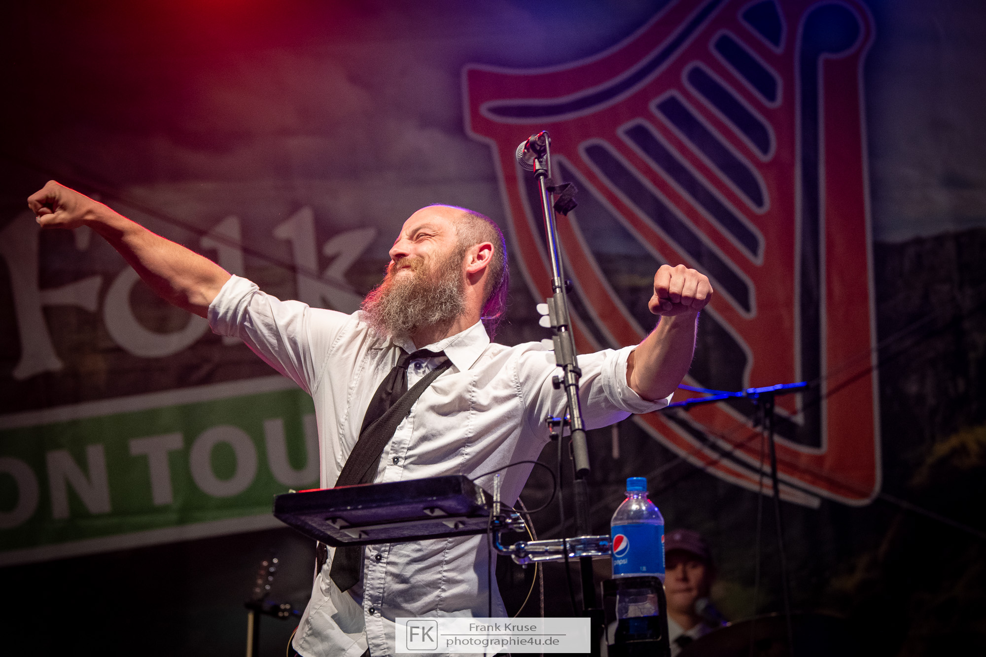 Neu war allerdings, dass die Band am Freitag zum ersten Mal in einer neuen fünfköpfigen Konstellation auf der Bühne stand. Dabei war vor allem neu, dass diesmal im kompletten Set ein Akkordeon zum Einsatz kann, welches den Sound der Band noch kompletter machte.